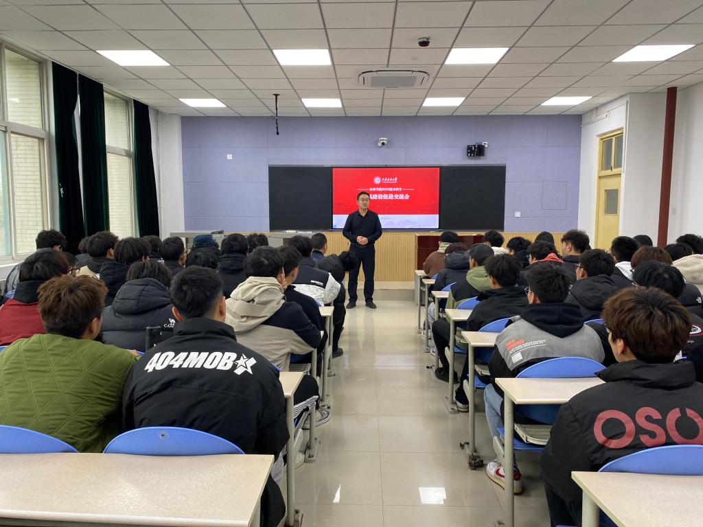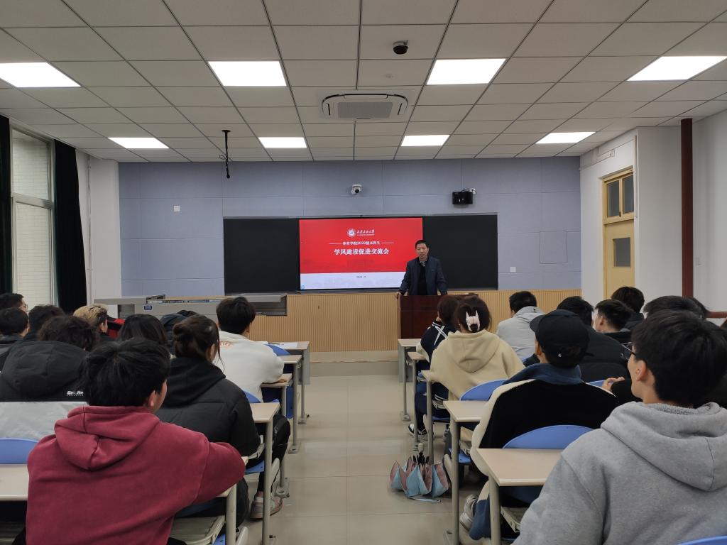 會上,茍毅飛首先對學風建設工作的重要性及當前學院的學風現狀進行了具體介紹和客觀分析。他指出,學風是校風、教風、師德師風的本質反映,是辦學理念和辦學水平的充分彰顯,良好的學風可以起到規范、引導學習發展的作用。開展學風建設可以培養學生明禮誠信、團結友愛、勤儉自強、敬業奉獻的基本道德規范,良好的學風能夠幫助同學們更好學習掌握科學文化知識,樹立誠實守信的價值觀念。因此,必須把學風建設當成一項重要的工作,常抓不懈。進而,在分析學院學風現狀和存在問題的基礎上,提出了學風建設的基本思路和基本目標,要求逐步建立學風建設的長效機制,培養同學們自覺學習的習慣和誠信意識,努力做到“八高四低”,即學生出勤率高、及格率高、過級率高、獲獎率高、社會實踐參與人數比例高、考研率高、就業率高、校園文化活動層次高;學生不及格率低、違紀率低、曠課率低、退學警告率低。最后,從加強日常管理,促進規范養成;加強班級建設,以優良班風推動學風建設;開展主題教育活動,培養良好學習風氣,營造濃厚學習氛圍等三個方面提出了加強學院學風建設的具體措施,同時希望同學們端正學習態度,明確學習目標,制定學習計劃,采取具體行動,以良好的精神面貌全力以赴、全身心投入,成為學風建設中的佼佼者,排頭兵,共同營造積極向上的學習氛圍,促進學院良好學風建設長效機制的形成。