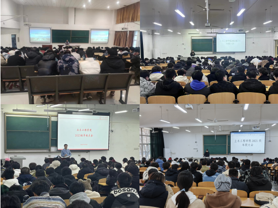 寒意漸退,春色已濃。新學期伊始,為了讓全體同學能在新目標、新任務的指引下,勇擔新使命,聚焦主責主業,進一步統一思想,凝心聚力,近日,土木工程學院各年級在鄠邑校區召開了主題年級大會。輔導員老師李化杰、張曼、奴麗艷木、康麒龍分別主持大會。