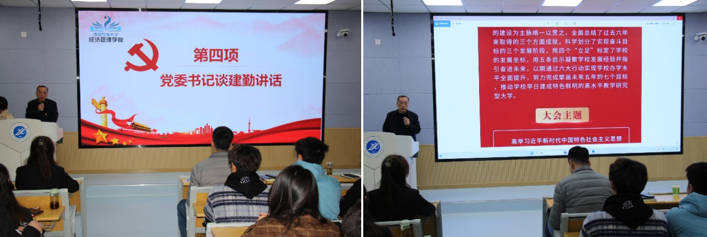 學院黨委書記談建勤對本次述職匯報進行點評總結。他對2023年學院學生黨建工作成果表示肯定,對辛勤付出的黨工辦全體成員表示感謝。他強調,學生黨建工作要始終堅持以習近平新時代中國特色社會主義思想為指導,堅持因時而化、因事而進、因勢而新,多措并舉創新工作方式方法,強化黨建品牌建設。他指出,提升黨建工作質量是落實“立德樹人”根本任務的重要舉措,增強黨務工作隊伍建設,有利于發揮黨建的示范引領作用。會上,他結合落實學校第三次黨代會精神為全體干部講授專題黨課。他指出,學校第三次黨代會是學校改革建設發展實現關鍵性跨越的一次重要會議,全面總結了學校過去六年來取得的成就,為學校未來發展凝聚了啟示經驗、指明了奮進方向。他鼓勵大家要不斷提高政治站位,堅定理想信念、堅守初心使命,立志成才報國、恪守清正廉潔,奮勇爭先、不負韶華。他對大家提出四點要求和希望:一是在思想政治上要保持先進、保持敏銳、保持主動,充分發揮引領示范作用;二是在學風建設上要帶頭示范、鼓勁加油、督促幫扶,從點滴小事做起,不斷營造良好學風;三是在學術研討、社會實踐、社團建設、公益活動等方面要大膽探索、不斷創新,努力打造“博學多思、銳意進取、永爭第一”的經管學生品牌;四是在品德修養上要砥礪不輟、躬行踐履,營造團結友愛的集體氛圍,強化道德修養,形成崇德、爭優、創優的良好氛圍。