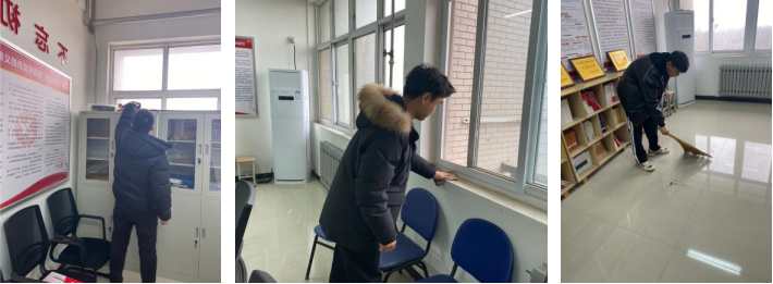 正值學雷鋒志愿服務月,會后周鑫老師和學生黨建辦公室同學對學院各辦公室進行了衛生大清掃。