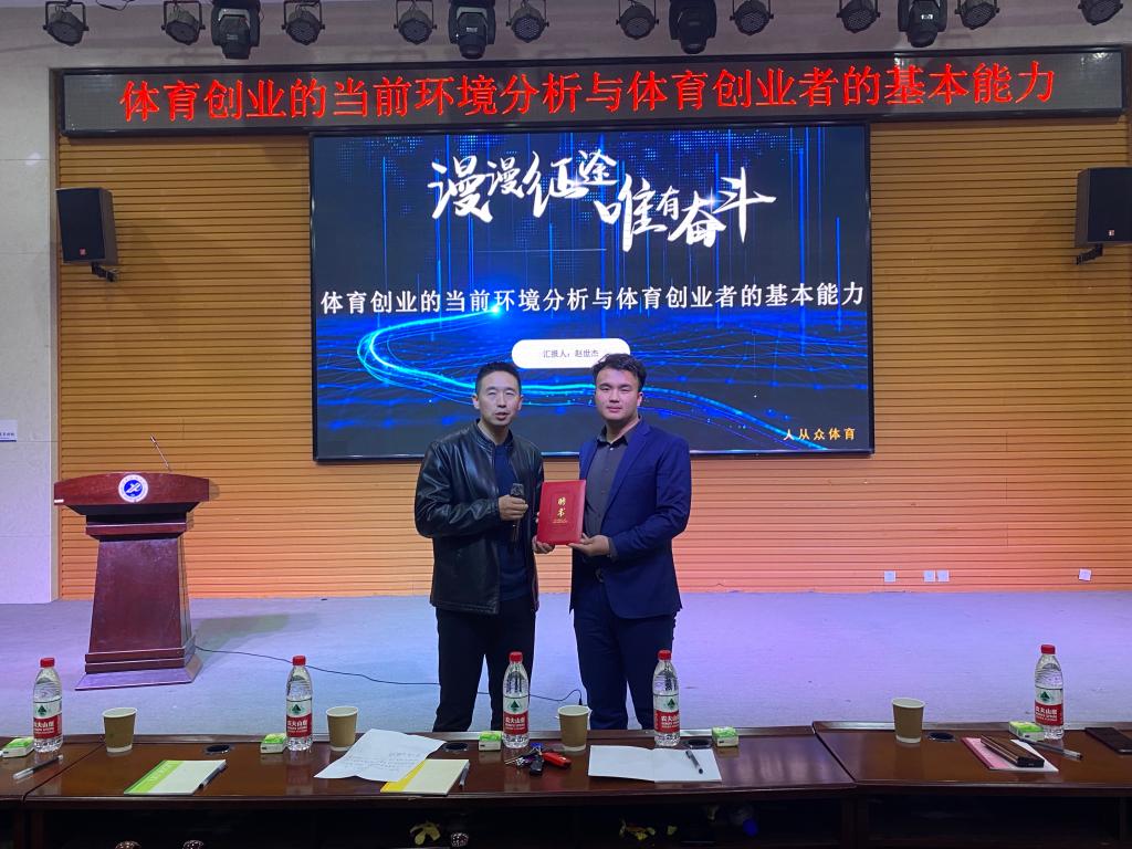 講座結束后,李壽邦院長代表學院對趙世杰董事長的精彩演講表示感謝,并為其頒發聘書,聘任趙世杰董事長為體育學院校外實習指導教師和創新創業導師。他強調,同學們要不斷開闊視野和提升自我,拓寬創新創業活動思路,勇于接受挑戰;要利用所學知識更好地規劃自身發展,明確自身目標,積極參加創新創業競賽,切實提升自身創新創業能力,積極投入到創新創業的浪潮之中。