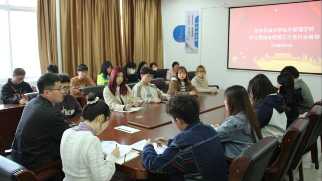為進一步加強團學干部思想政治建設,提升理論水平,深入學習貫徹2024年全國兩會精神與學校第三次黨代會精神,經濟管理學院于3月13日下午在鄠邑校區崇文樓305會議室舉辦團學干部學習交流分享會。經濟管理學院團委書記李博文、團學指導老師任仰及主要團學工作干部參加本次活動。