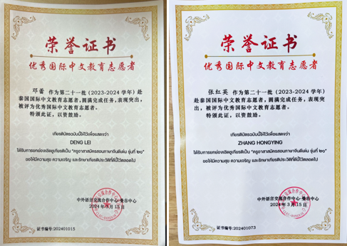 3月15日下午,中國教育部中外語言交流合作中心、泰國教育部、泰國高等教育和科研創新部在曼谷聯合舉辦赴泰國際中文教育志愿者離任歡送大會暨國際中文教育志愿者項目20周年活動。我校人文學院漢語國際教育專業2021級研究生鄧蕾、2022級研究生張紅英作為第21批(2022-2023學年)赴泰國國際中文教育志愿者,圓滿完成任務,表現突出,被評為“優秀國際中文教育志愿者”。