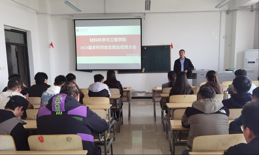 為深入貫徹落實國家關于高校畢業生就業創業工作的決策部署和學校相關工作安排,扎實做好2024屆畢業生就業指導與服務工作,進一步引導畢業生樹立正確的就業觀念,提高就業積極性和主動性,3月22日下午,材料科學與工程學院在鄠邑校區天工樓401教室召開2024屆未就業本科畢業生動員大會。學院黨委副書記張云姿、學生工作辦公室主任郭媛,以及2024屆全體未就業畢業生參加會議,會議由畢業班輔導員馬黎主持。
