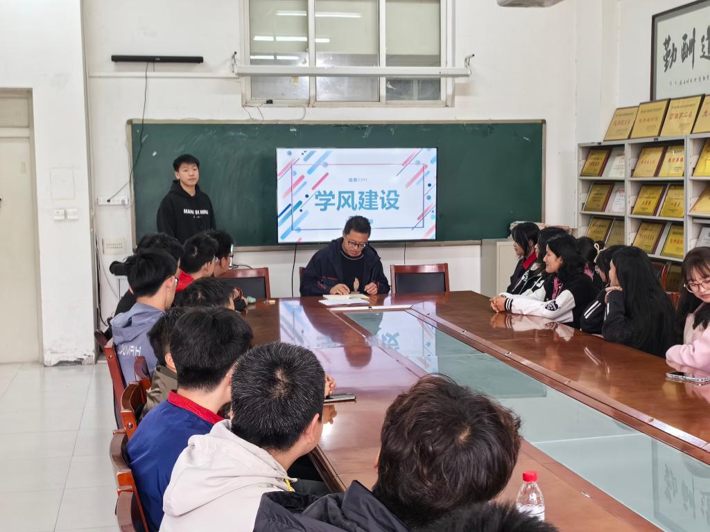 學院2023級輔導員李猛分別組織召開了2023級8個班次的主題班會。李老師結合各班級上學期期末考試成績進行情況分析。他總結了上學期同學們在大學生活中的表現,鼓勵同學們在保證學業優秀的同時積極參與課外活動,發掘自己的興趣愛好。同時,李老師針對“污點學分”較多的同學進行學業警示,通過家校聯合,朋輩互助,學科專項學習小組等方法,提高同學們學習積極性和自身學習能力。