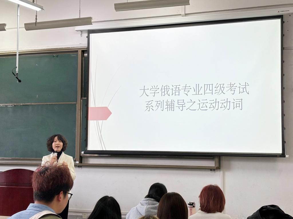 學習引領,干在實處。3月以來,俄語系教師黨支部急學生所需,貢獻師者力量。針對本學期的俄語專八、專四考試,組織黨員教師羅蝴蝶、孫婷、李娜、郭靜遠、管義珅為學生開展俄語專業四級講座7場,主題分別為:俄語前置詞、名詞、運動動詞以及帶前綴的運動動詞、詞類辨析、形容詞等。組織專業八級、專業四級模擬考試二場,有效助力俄語專四專八通過率。為提高教育教學和學生學業質量,俄語系堅持為學生們配備7人一組的學業導師,俄語系全體教工黨員、賈永寧老師、無黨派人士王春牧老師作為學業導師堅持每周為學生輔導一次,為學生取得良好成績保駕護航。此外,為幫助學生做好職業規劃,推進就業和考研,俄語系教師黨支部還舉辦了“榜樣的力量”經驗分享交流會,組織優秀在校生、畢業生給低年級學生分享經驗,發揚專業傳幫帶的優良傳統。
