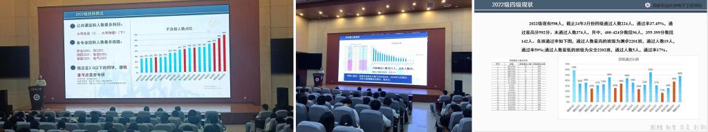 隨后,各年級輔導員老師還指出要繼續加強班級建設,利用本次年級大會展示了四六級通過率、掛科率等班級建設各項指標,旨在讓各位同學清晰班級定位,補齊班級建設數據短板,在年級內形成你追我趕的良好學習氛圍。