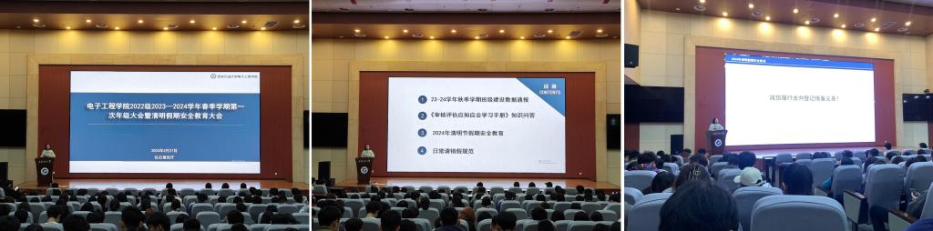 為深化校園安全責任意識,鑄牢學生安全防線,做好清明節假期安全教育工作,強化學生安全意識,預防和減少各類安全事故的發生,營造安全、有序、健康、文明的校園環境,電子工程學院各年級利用年級大會、主題班會等方式于2024年3月27日-4月2日開展清明假期安全教育。