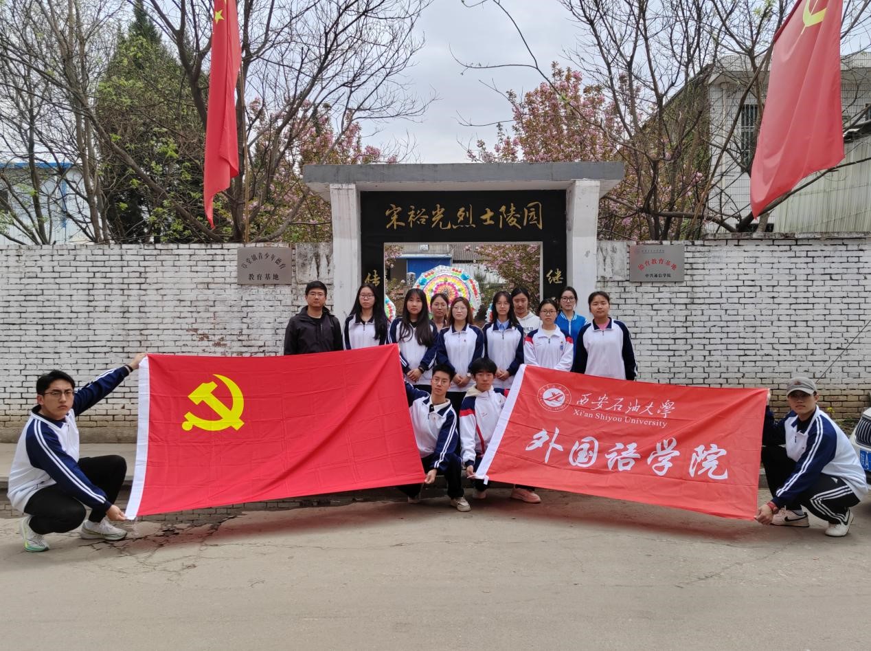 為緬懷革命先烈,賡續紅色精神堅定理想信念。在清明節到來之際,外國語學院組織20余名學生黨員、團委和學生會代表在輔導員陳浩、張靚帶領下分別前往西安烈士陵園、宋裕光烈士陵園開展清明祭掃活動。