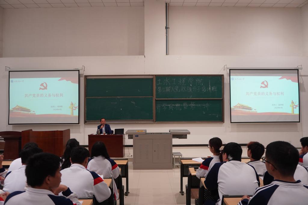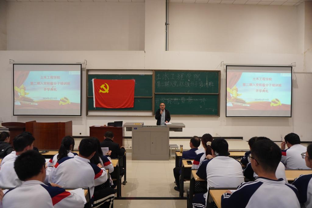 4月10日晚,土木工程學院黨委在鄠邑校區天工樓115教室舉行第二期入黨積極分子培訓班開班典禮式。校黨委委員、宣傳部部長趙承勝、土木工程學院黨委書記陳濤、各年級輔導員應邀出席了開班典禮,本期125位學員參加了開班典禮。開學典禮由學院黨委委員、學工辦主任李化杰主持。