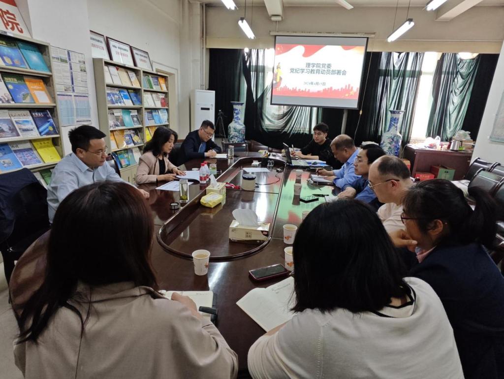 4月15日下午,理學院在雁塔校區東方石油樓501室召開了黨紀學習教育動員部署會,學院領導班子成員、黨委委員、黨支部書記參加了會議,會議由學院黨委書記廖敏主持。