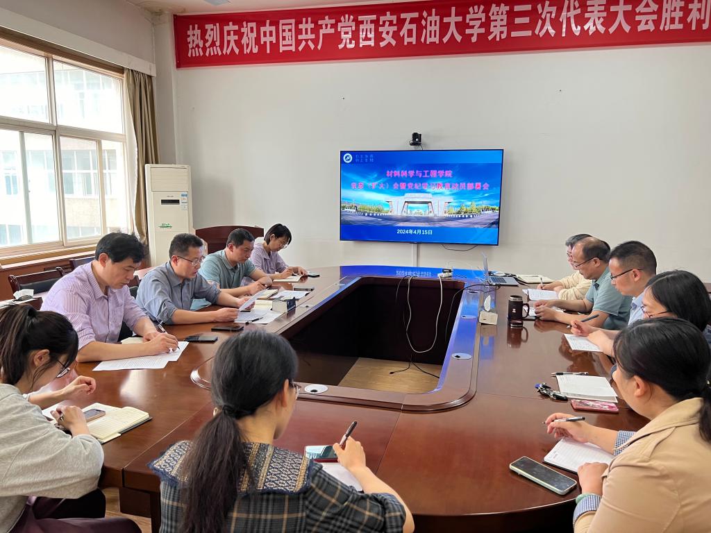 為深入學習貫徹習近平總書記關于黨紀學習教育的重要講話和重要指示精神,4月15日下午,材料科學與工程學院在雁塔區四號實驗樓412會議室召開黨委(擴大)會暨黨紀學習教育動員部署會,認真研究部署學院黨紀學習教育工作。學院領導班子成員、黨委委員、各黨支部書記參加會議,會議由學院黨委書記林紅先主持。
