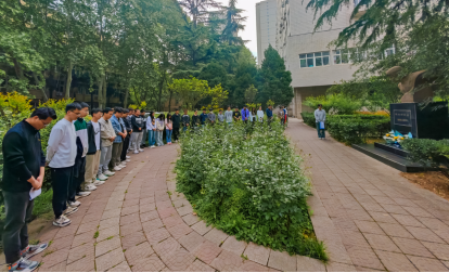 2024年4月16日上午,石油工程學院在雁塔校區春雨苑舉辦唐春雨烈士逝世35周年追思活動。輔導員宋興淼及學生代表共計50余人參加了活動。
