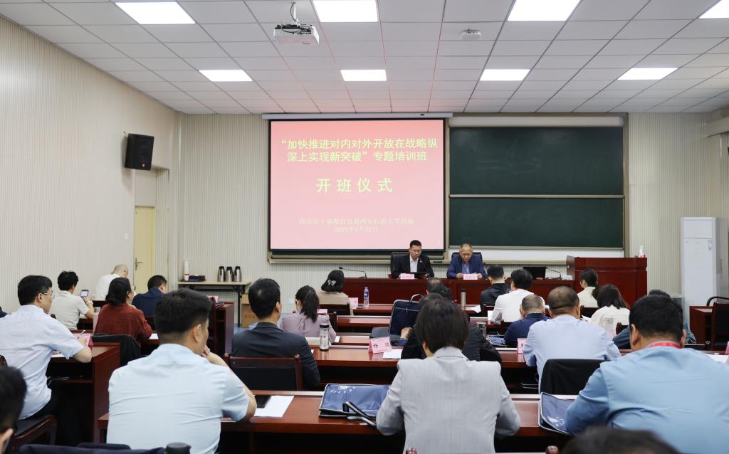 4月22日上午,由中共西安市委組織部主辦、我校干訓基地承辦的“加快推進對內對外開放在戰略縱深上實現新突破”專題培訓班在明德校區順利開班。繼續教育學院副院長吳民生出席開班儀式并致辭,來自西安市各區縣、西咸新區及各開發區、市級相關部門的中層領導干部共49人參加了開班儀式。