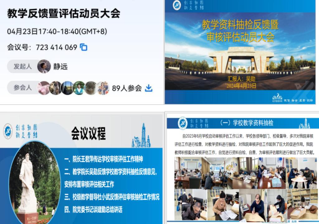 4月23日,經濟管理學院召開全院教職工會議,反饋近期學校教學資料抽檢專家意見,開展審核評估專家進校前工作動員。
