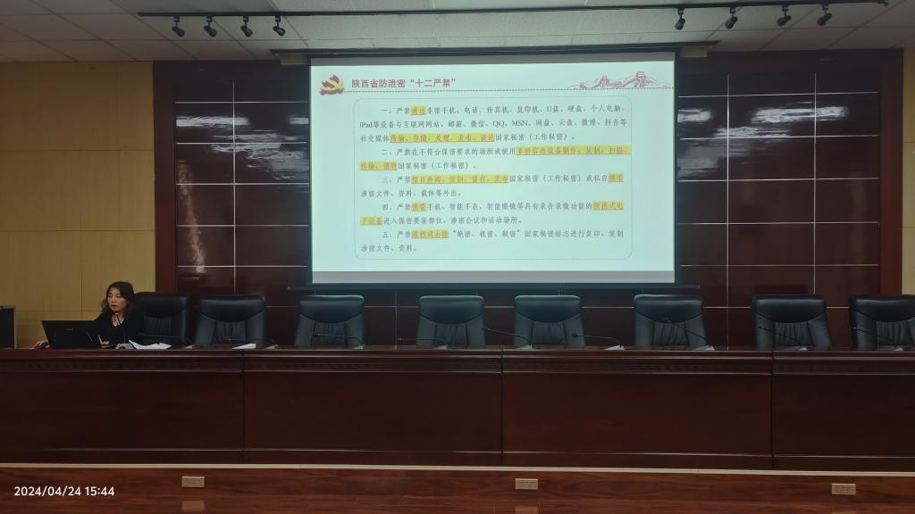 會上,院黨委書記廖敏強調了防泄密的重要性。她以舉例的方式,帶領與會人員認真、詳細的學習了《陜西省防泄密“十二嚴禁”》的內容。