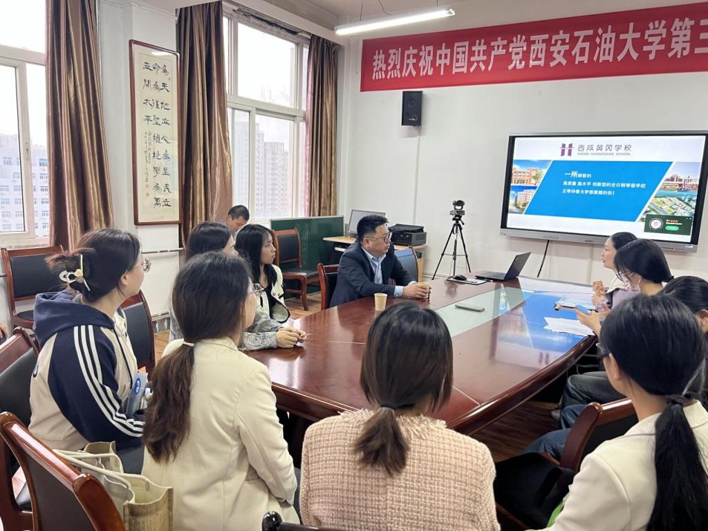 招聘會前,人文學院全體班子成員與黃岡涇河中學領導和老師,在雁塔校區華油能源樓人文學院會議室813進行了友好座談。