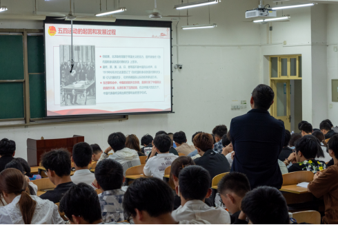 伴隨著莊嚴的《光榮啊,中國共青團》團歌奏響,團課正式拉開序幕。黃景鵬通過豐富的歷史資料向同學們詳細回顧了五四運動的歷史背景、起因、發展過程、歷史意義以及產生的深遠影響。他指出,五四運動是以一批先進青年知識分子為先鋒、廣大人民群眾共同參與的徹底反帝反封建愛國革命運動,更是中國青年追求真理、勇于探索、敢于斗爭的精神象征,它推動了社會進步,促進了思想解放,開啟了民族復興的新的起點,是中國新民主主義革命的開始。他強調,最好的紀念是繼承和發揚。祖國的事業發展離不開青年,青年的成長和發展更離不開國家。要弘揚五四精神,始終牢記五四精神的核心內容,即愛國、進步、民主、科學。他希望,青年學生要不忘初心、牢記使命,始終堅定理想信念,自覺聽黨話、跟黨走,樹立遠大志向,自覺把個人理想追求融入國家和民族的事業之中,錘煉高尚的品格,學好專業技能,提升過硬本領,增長能力才干,永保奮斗姿態,勇于創新和探索,投身國家能源建設,做有理想、敢擔當、能吃苦、肯奮斗的新時代好青年,勇當實現中華民族偉大復興的生力軍和主力軍。