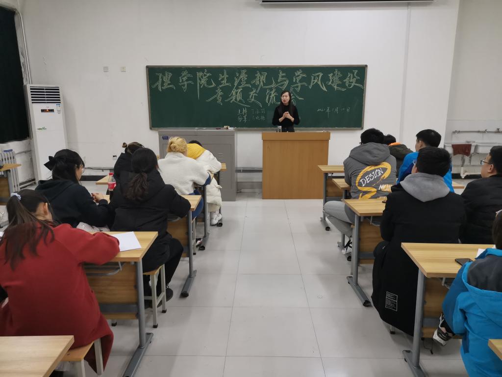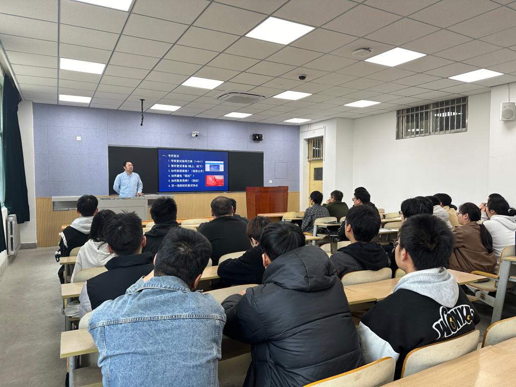 二、摸清底數,分類服務。學院堅持“一班一策、一生一策”,分類指導服務,切實推進畢業生考研工作。一是準確摸清畢業生考研底數。輔導員通過電話、微信、QQ等方式對畢業生考研意愿進行逐一摸底,全面掌握他們的目標院校、復習狀態,建立工作臺賬進行全程跟蹤。二是按專業需求,分類向畢業生傳達考研經驗。學院堅持開展“生涯規劃與學風建設專題交流會”按照專業分批次邀請已經考研成功的學長學姐與畢業生們展開交流,通過交流幫助畢業生更好地做出考研專業與院校的選擇。三是針對學生在考研數學、英語方面的薄弱環節,學管辦組織專門的高數提升班、英語補習班強化學生考研基礎。學院高楠老師堅持每周三下午為全體考研學生作一次考研數學輔導,風雨無阻盡顯師者風范。全體學工干部分工不分家,常態化為同學們作考研咨詢與輔導,有問必答、有疑即解,切實為畢業生考研做好咨詢員、服務員、指導員。
