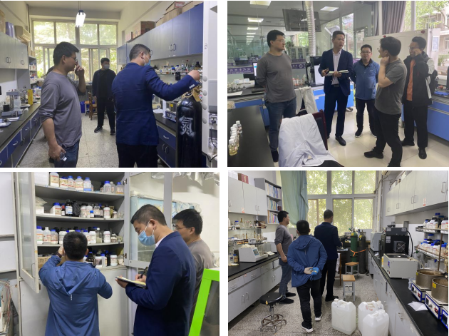 5月9日下午,劉濤一行在賈新剛老師、周毅華老師的帶領下,逐一對化學化工學院各實驗室進行了安全隱患排查。排查過程中,不僅幫同學們回顧了上午培訓內容,同時幫實驗室找出了安全隱患,并詳細講解了整改措施以及發生險情后的處置方法。
