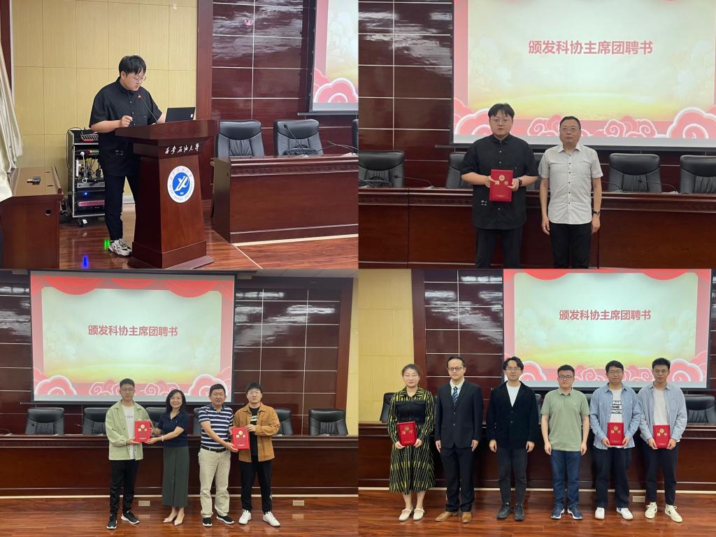 會上,地球科學與工程學院副院長黨偉代表研究生科學技術協會籌備組向全體參會人員匯報了籌備工作情況,包括籌備背景和初衷、研科協簡介和組織架構、組織動員和選拔結果以及研科協的發展規劃,并對學院領導的大力支持和所有參與籌備工作的團隊成員表達了感謝。隨后,宣讀了研科協主席團任命文件,并邀請學院領導及校外專家為首屆研究生科學技術協會成員頒發聘書。
