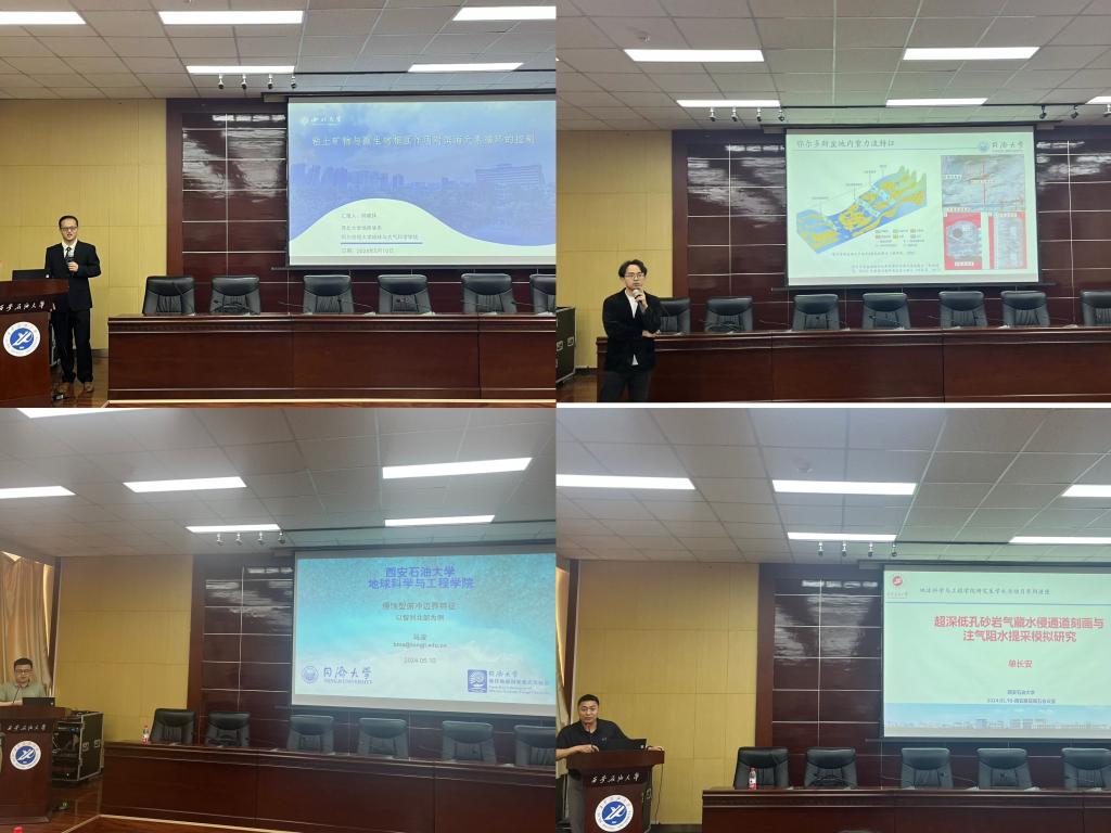 在大會報告環節,西北大學教授、國家優青郝威鐸,同濟大學研究員、上海市領軍人才吳南,同濟大學研究員、上海市白玉蘭人才馬波以及西安石油大學副教授單長安為師生們作了精彩紛呈的學術報告。其中,郝威鐸教授作了題為《粘土礦物與微生物相互作用對濱海微量元素循環的控制》的專題報告;吳南研究員作了題為《深海重力流的識別標志與油氣地質意義》的專題報告;馬波研究員作了題為《侵蝕型俯沖邊界特征-以智利北部為例》的專題報告;單長安副教授作了《超深低孔砂巖氣藏水侵通道刻畫與注氣阻水提采模擬研究》的專題報告。報告結束后,4位校內外專家與現場師生進行了深入的交流和討論,現場氣氛熱烈。最后,副院長黨偉對4位專家帶來的精彩報告表示感謝,并提到此次報告拓寬了專業研究視野,為多學科交叉研究注入新的理念,全體師生獲益良多。