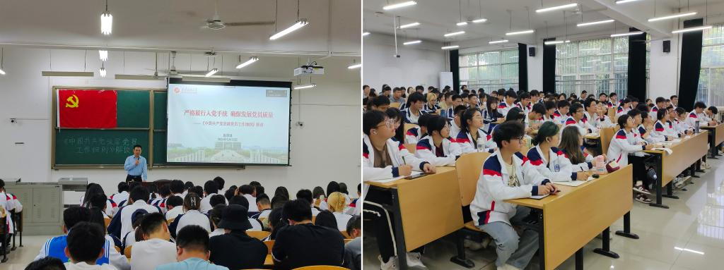 2024年5月12日,電子工程學院第二十五期入黨積極分子培訓班第九講在鄠邑校區博思樓121教室順利進行。本次黨課的主題為《中國共產黨發展黨員工作細則》解讀,由西安石油大學計算機學院黨委書記龐秉謙老師擔任主講,電子工程學院167名入黨積極分子參加了本次黨課學習。