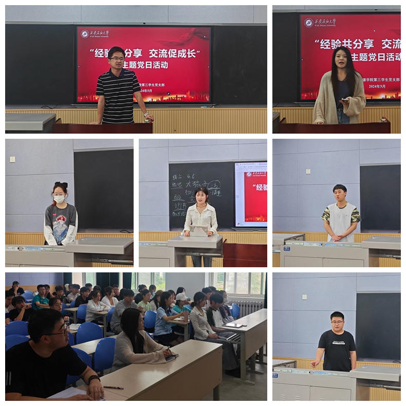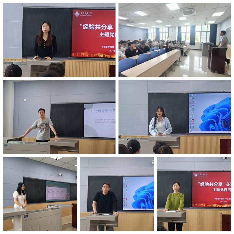 為實現校黨委“一校一策”選題“推動新能源學院高質量發展”各項目標任務高質量完成,深化黨建引領業務發展,進一步加強學院學風建設,正確引導2025屆學生明確考研就業形勢,做好個人發展規劃,5月8日-11日,新能源學院各學生黨支部組織開展“經驗共分享,交流促成長”主題黨日活動,活動由各學生黨支部書記主持,2024屆考研就業典型及全體2021級學生參加。