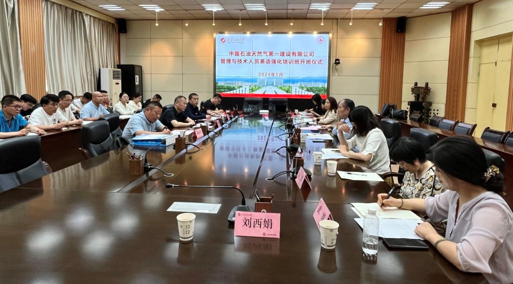 5月17日上午,外國語學院在雁塔校區會議中心第二會議室舉行了中國石油天然氣第一建設有限公司“國際合作工程技術與管理人員英語強化培訓班”開班儀式。中國石油天然氣第一建設有限公司第五分公司經理常曉鋒、總經濟師汪洋、學院黨委書記田虹霞、副院長劉輝、MTI中心主任袁森、部分任課教師及全體培訓學員參加。