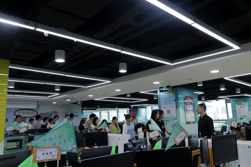 會后,學而思招聘負責人李歡帶領一行人參觀了公司的辦公場所,介紹了公司的核心業務和產品線,讓學生對學而思有了更加全面和直觀的認識。