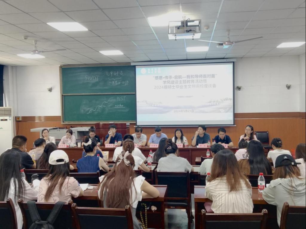 5月21日,經濟管理學院在雁塔校區東階201教室召開“感恩·傳承·啟航—我和導師面對面”學風建設主題教育活動暨2024屆碩士畢業生文明離校座談會。本次活動圍繞“弘揚科學家精神,恪守學術道德,培育優良學風”這一主題,深入學習貫徹習近平新時代中國特色社會主義思想,全面落實我校第三次黨代會精神,講好科學家故事,傳播優良學風,引導研究生堅守學術道德與科研誠信,涵養優良學風。經濟管理學院副院長李春霄,管科系趙需要,企管系黃聿舟,經濟系唐娟莉,會計系侯曉靖、黃莉、鄭蕊,研究生輔導員李政、阮添舜及各年級研究生代表30余人參加此次活動,活動由研究生輔導員陸昕陽主持。