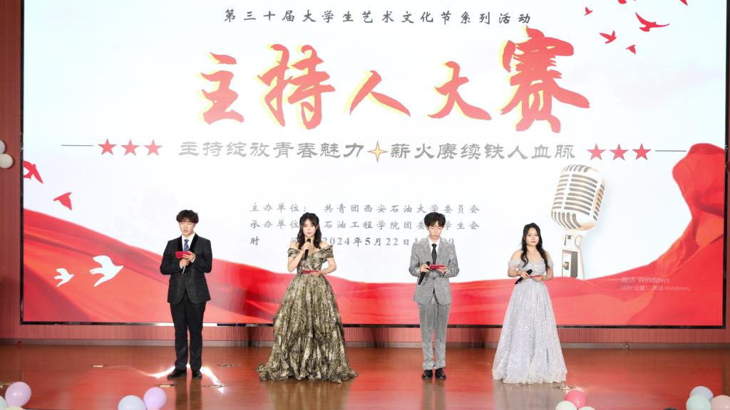 為進一步豐富校園文化生活,展現學生精神風貌和青春風采,培育和選拔優秀主持人才,5月22日晚七點,由共青團西安石油大學委員會主辦,石油工程學院團委、學生會承辦的“主持綻放青春魅力,薪火賡續鐵人血脈”主持人大賽在弘石學術報告廳隆重舉行。黨委辦公室(校長辦公室)副主任、鄠邑校區管理辦公室主任黃建禮,校團委書記何國強、黨委學生工作部副部長、學生工作處副處長畢軼慧,黨委保衛部副部長、保衛處副處長袁坤,計算機學院黨委副書記龐遠、理學院副院長折延宏、石油工程學院黨委副書記張建高、黨委學生工作部思想教育科科長孫劍秋、校團委副書記孫浩哲出席并擔任評委,兄弟院系團委學生會負責人及300余學生參加了活動。
