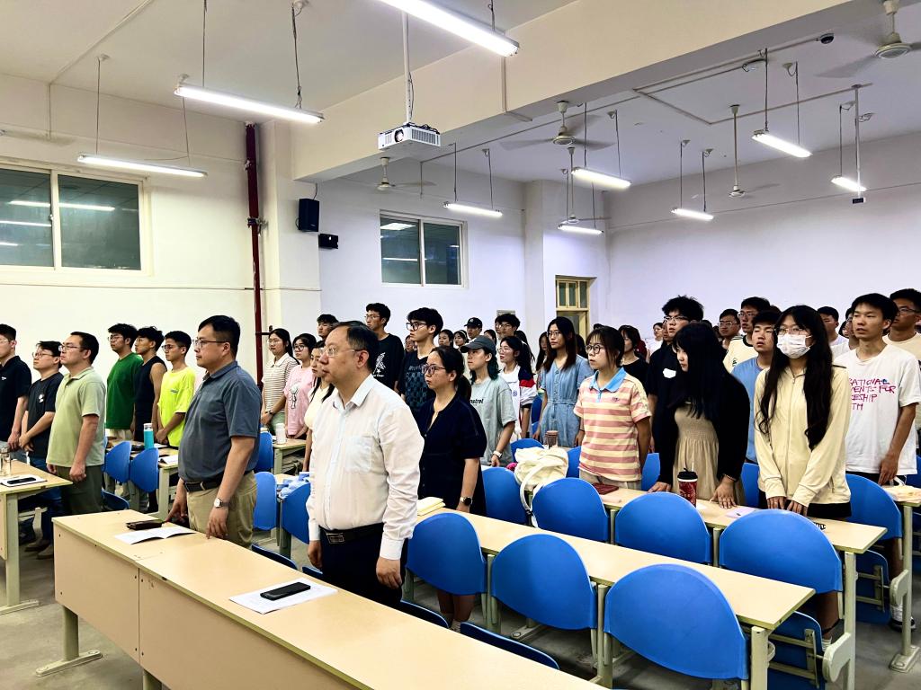 活動伊始,全體起立,在國歌聲中開班儀式拉開序幕。周鈺桐介紹了本次黨課培訓班基本情況,并宣讀培訓紀律條例。入黨積極分子楊玉璽同學代表全體參訓學生發言,承諾將嚴格遵守培訓班紀律,認真學習黨章黨史,努力踐行黨員標準,爭取早日加入中國共產黨。