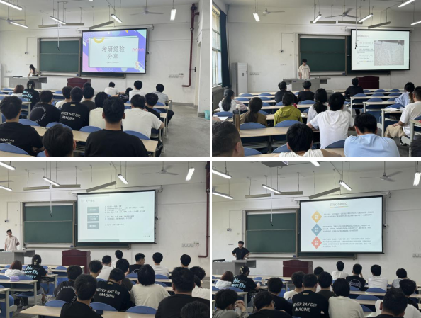 5月21日,在鄠邑校區博思樓邀請2024屆考研成功的四位學生代表分享考研經驗,他們用自己的獨特方法,自身實踐經歷,分享切身體會,將寶貴的經驗與見解傳遞給各位備考同學。以講座和互動的形式就考研學習方法、考研目標、擇校經驗、資料準備、考研時間安排、學習計劃制定、考試注意事項和推免面試等方面的問題進行了詳盡的解答。