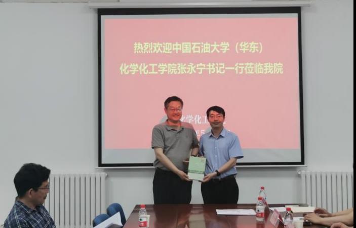 張永寧書記對化學化工學院的熱情接待表示感謝,他詳細回顧了兩校的合作和交流歷史,共同追溯了在1958年西安石油學院建設之初北京石油學院就派出了72名老、中、青專家團隊扎根西安支援西安石油學院建設,兩校有非常深厚的兄弟情誼。張永寧書記還對中國石油大學(華東)化學化工學院黨委近年在黨建工作取得的成績進行介紹,學院黨委通過創建“師生下午茶”、“化蘊”大講堂等品牌活動有效促進了黨建引領學科專業建設、育人等方面發展,取得了良好的效果。最后,張永寧書記向西安石油大學化學化工學院贈送了中國石油大學建校70周年慶紀念叢書——《化學化工學院志》。