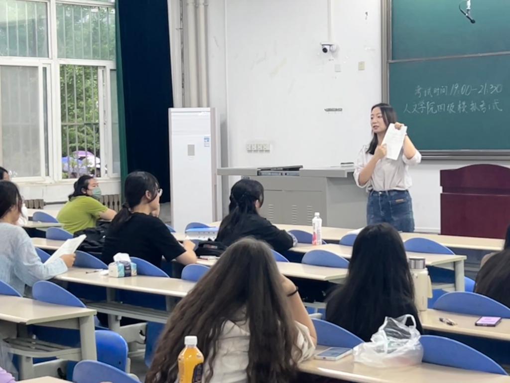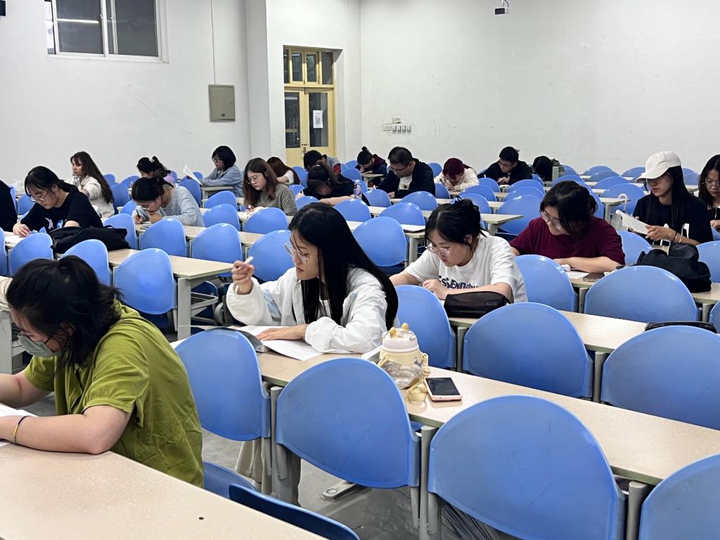 考試前,2022級輔導員范嘉欣強調了考試紀律問題,要求大家以積極認真的態度對待考試。本次四級模擬考試嚴格按照流程進行,提前入場、有序入座,考試期間同學們認真答題、沉著應對,監考人員認真負責,考場氛圍嚴肅緊張。
