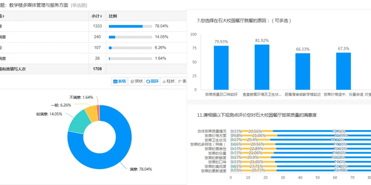 本次師生滿意度調查共回收有效問卷6253份,其中餐飲服務企業問卷4013份,物業服務企業問卷2240份。通過詳實的數據統計與分析,準確分析了師生的意見建議,為考核工作收集了重要的基礎數據。