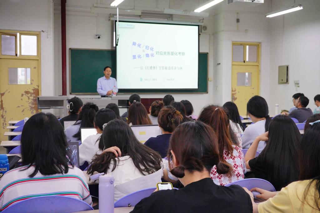 為加強研究生基礎知識學習、培養科研興趣、拓寬學術視野及啟迪思維。5月29日下午,外國語學院特別邀請河南大學二級教授、博士生導師劉澤權教授在鄠邑校區博覽樓A227開展了題為“異化/歸化與顯化/隱化對應關系量化考察——以《紅樓夢》官稱英譯為例”的學術講座。外國語學院翻譯碩士一年級研究生及部分二、三年級學生聆聽了本次講座。