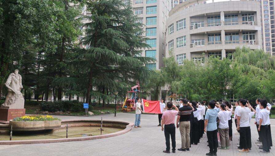 在畢業生文明離校之際,2021級研究生黨支部以黨紀學習教育為主線,進行“石油精神”“鐵人精神”再教育,做好離校前各項工作,組織了本次主題黨日活動?;顒娱_始,全體黨員在趙云天同志的帶領下面向黨旗,在鐵人雕像前重溫入黨誓詞,進行莊嚴宣誓。