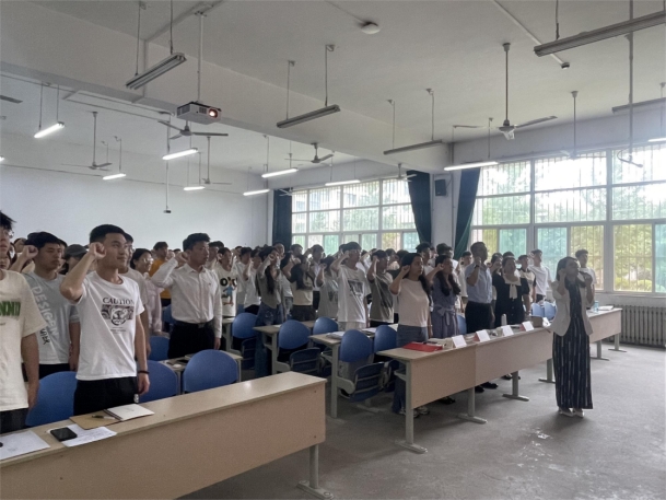 潘娜以《青春向黨筑夢遠航 建功新時代》為題,為全體畢業生黨員講授了主題黨課。她對全體畢業生黨員提出了三點期望:一是不忘初心,牢記黨員身份;黨員“第一身份”既是榮譽,更是責任;既是稱號,更是要求。各位畢業生黨員在步入社會后要時刻牢記共產黨員的“第一身份”,在社會各個領域充分發揮黨員的先鋒模范作用,在方方面面始終走在時代前列。二是信仰鑄魂,堅定理想信念;學?!八膶嵰恍隆钡娜瞬排囵B特色,是學校堅持社會主義教育方向、尊重教育規律的積極探索,也是始終不渝地將石油精神、鐵人精神與日常教育教學緊密融合的不懈實踐,更是我們這所立足西部、肩負國家能源戰略大發展使命院校響應“國之大者”,為黨育人、為國育才信念的高度凝練。同學們走出校園后,要繼續堅定理想信念,發揚“四實一新”特色,為母校擦亮金名片。三是砥礪奮進,勇擔時代使命;作為一名共產黨員要弘揚黨的優良傳統,發揮模范作用,堅守初心使命,在青春賽道上不畏艱險、奮力奔跑、勇挑重擔,用實際行動踐行青春誓言,充分展示出青年人在新時代昂揚向上的精神風貌。隨后,潘娜帶領全體畢業生黨員重溫了入黨誓詞。