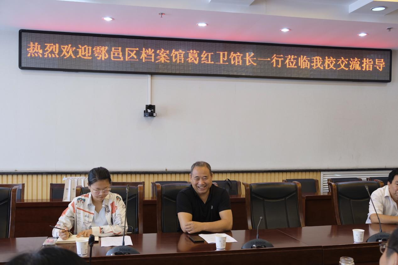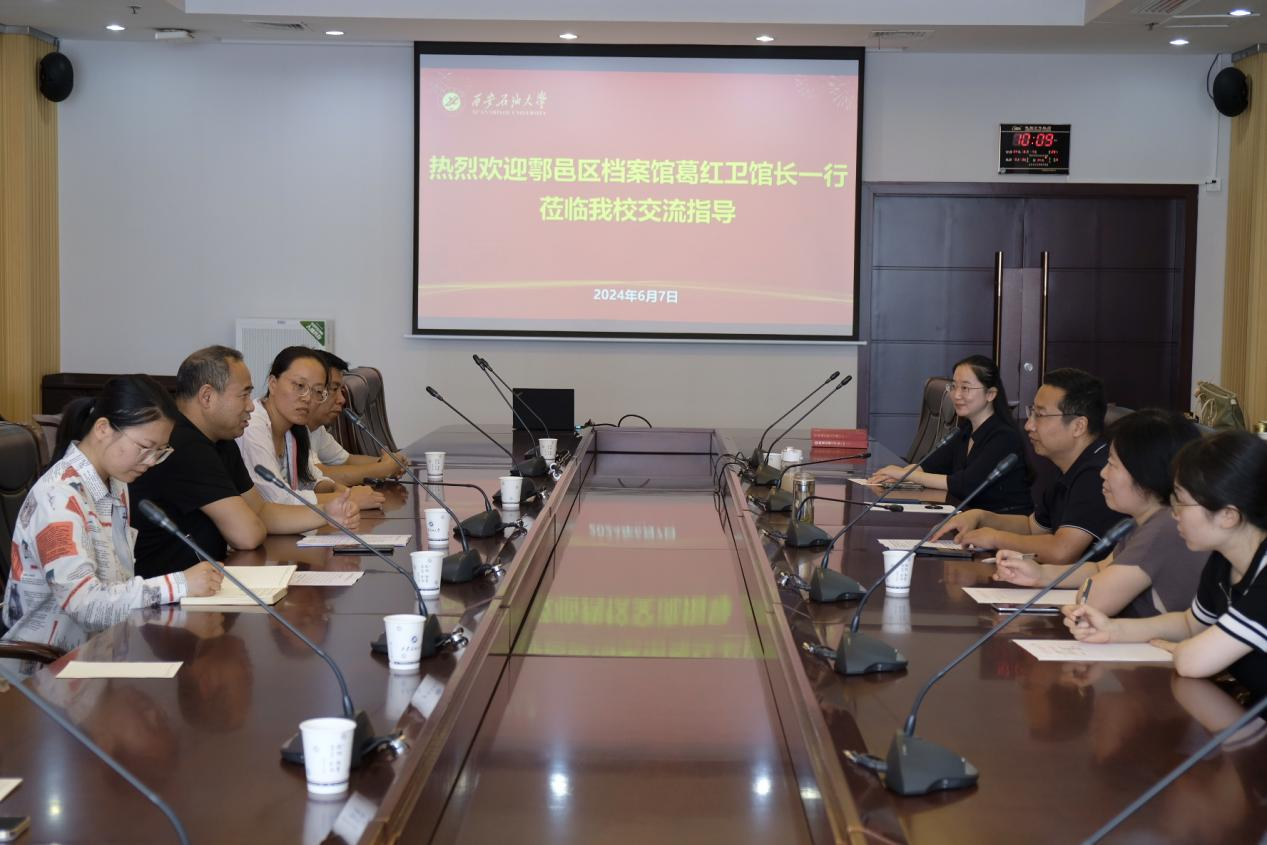 6月7日上午,鄠邑區檔案館館長葛紅衛一行到我校檔案館調研交流。校檔案館館長馬超及全體工作人員參加座談會,座談會在鄠邑校區圖書館第二會議室召開。