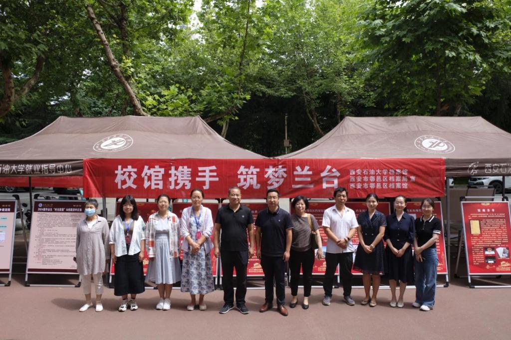 會后,鄠邑區檔案館館長葛紅衛一行參觀了校史館。參觀結束后,雙方聯合開展了“校館攜手,筑夢蘭臺‘6·9’國際檔案日主題宣傳”活動,重點對《檔案法實施條例》、畢業生檔案辦理流程和檔案征集活動進行了宣傳?;顒釉卩傄匦^B區食堂門前舉行。