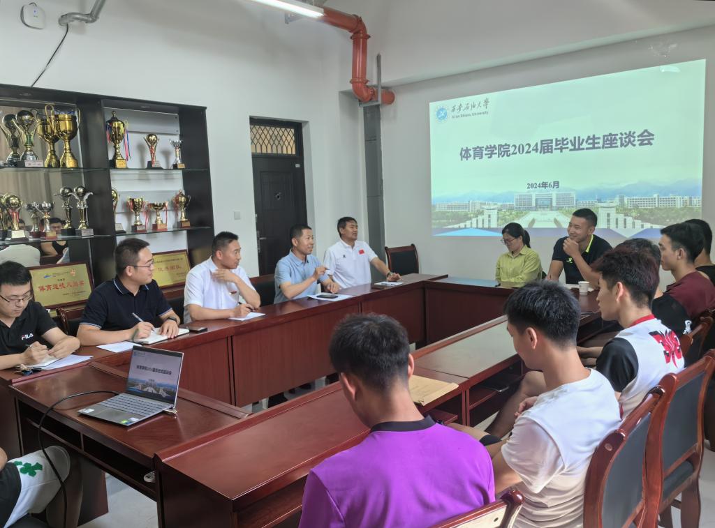 為加強學院師生之間的交流溝通,促進學院教育教學工作全面發展,同時表達對畢業生的深切關懷和美好祝福。6月7日下午,體育學院在鄠邑校區東操場208會議室舉辦2024屆本科畢業生座談會。學院黨總支書記茍毅飛、院長李壽邦、社會體育指導與管理專業教研室主任胥山、學生工作辦公室主任焦龍、輔導員張澤正及2024屆全體畢業生參加座談會。會議由學生工作辦公室主任焦龍主持。