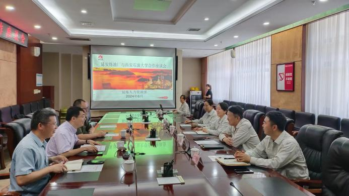高小明書記對延安煉油廠對此次走訪的熱情接待和多年來接納學院本科生生產實習表示由衷的感謝,同時,介紹了西安石油大學和化學化工學院的發展近況,并對將來進一步深化大學生實踐基地建設的構想做了深入的交流,期待雙方能夠發揮各自的優勢,進一步提升實踐基地的質量和層次,有效促進學生工程實踐能力和人才培養的質量。會中,范崢副院長介紹了化學化工學院在學科專業建設、人才培養、科學研究等方面取得成果,也對延煉多年來積極為學生實習實踐提供最大的方便和支持表示感謝,期待雙方以此次在深化合作交流方面達成初步共識為契機,未來能夠進一步擴展合作內容。