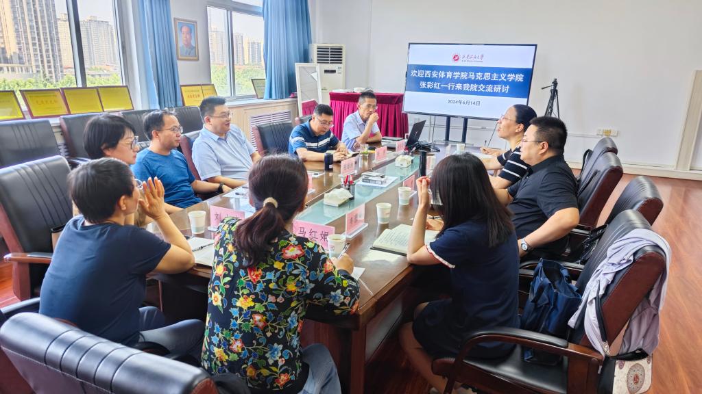 6月14日,西安體育學院馬克思主義學院副院長張彩紅一行5人來我校馬克思主義學院交流研討。我校馬克思主義學院院長張海濤、黨總支書記張偉、副院長董春詩等參加了研討會。