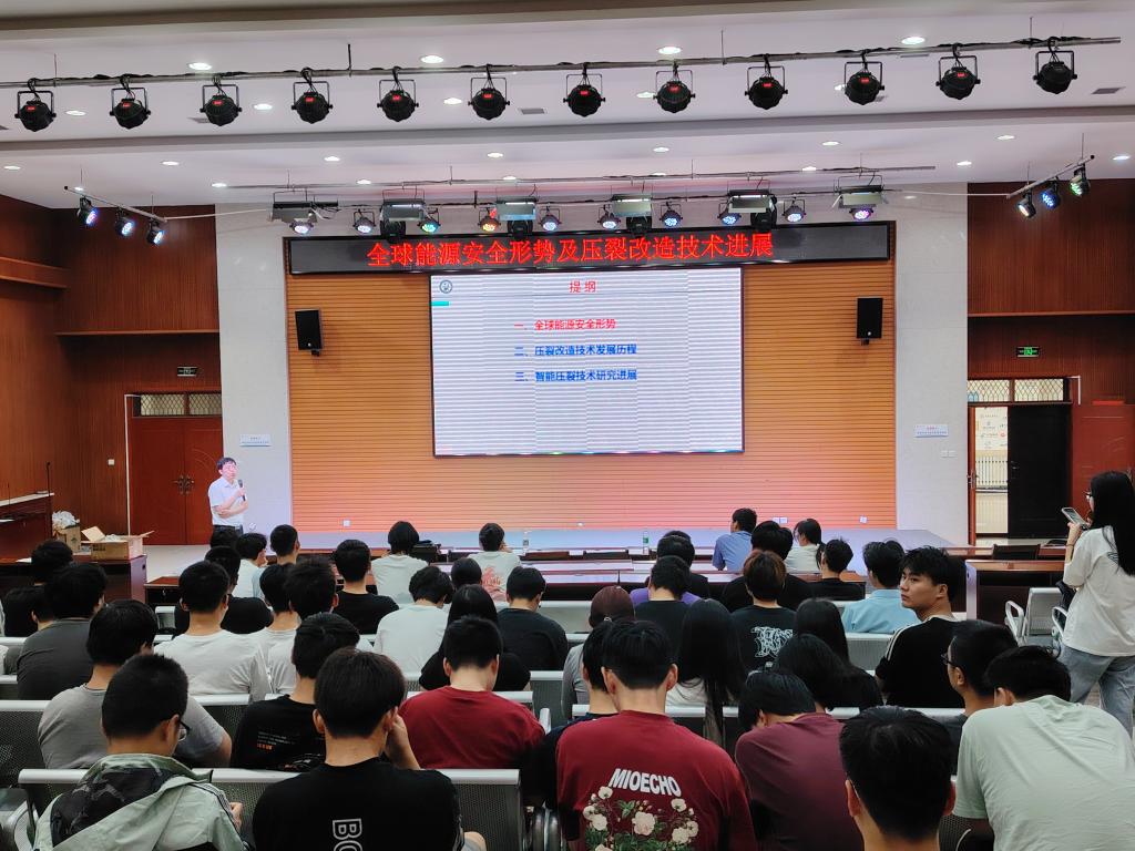 6月22日上午,石油工程學院在鄠邑校區崇文樓118舉辦石工前沿第111講—全球能源安全形勢及壓裂改造技術進展報告會。報告會特邀我校石工93級校友、中國石油大學(華東)博士生導師羅明良教授擔任主講人。學院碩士研究生、本科生共計200余人參會。