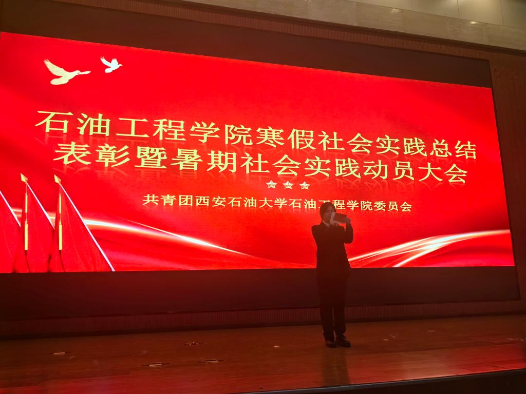 為鼓勵我院學子“用腳步丈量祖國的每一寸土地”,充分利用假期,在社會實踐中受教育、長才干、作貢獻,同時為了表揚2024年寒假社會實踐先進個人和優秀團隊。石油工程學院于6月24日16:00在弘石報告廳舉辦2024年寒假社會實踐總結表彰暨暑期社會實踐動員大會。學院團委書記、2023級輔導員黃景鵬、團委學生會指導老師、2022級輔導員崔西印及學生代表200余人參與活動。