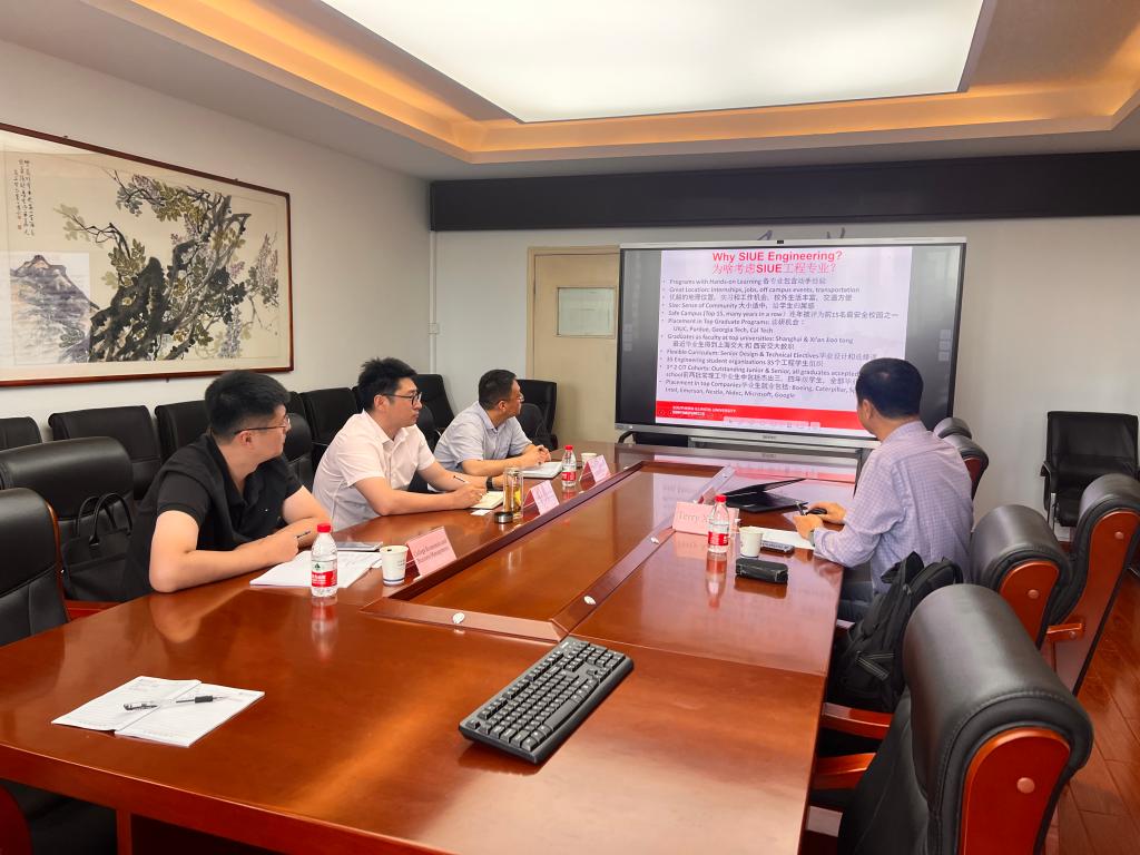 國際合作與交流處副處長、國際教育學院副院長顏庭星介紹了學?;厩闆r和國際合作交流意向。閆小軍教授介紹了美國南伊利諾伊大學愛德華茲維爾分?;厩闆r、工程專業設置以及獎學金計劃等。