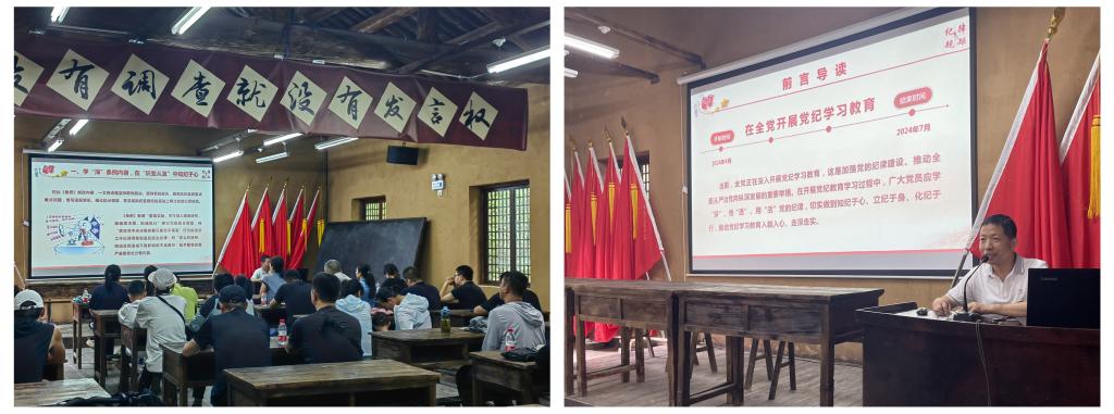 在紅軍遺址培訓課堂,黨總支書記茍毅飛從學“深”條例內容,在“識變從宜”中知紀于心;悟“透”主旨要義,在“心知其意”中立紀于身;用“活”規定要求,在“反躬自省”中化紀于行等三個方面,為全體黨員干部講授了題為《黨紀學習教育要知紀于心、立紀于身、化紀于行》紀律教育微黨課。通過講授,進一步加深了黨員同志們對黨紀黨規的深入理解與重視,推動了黨紀學習教育走深走實。