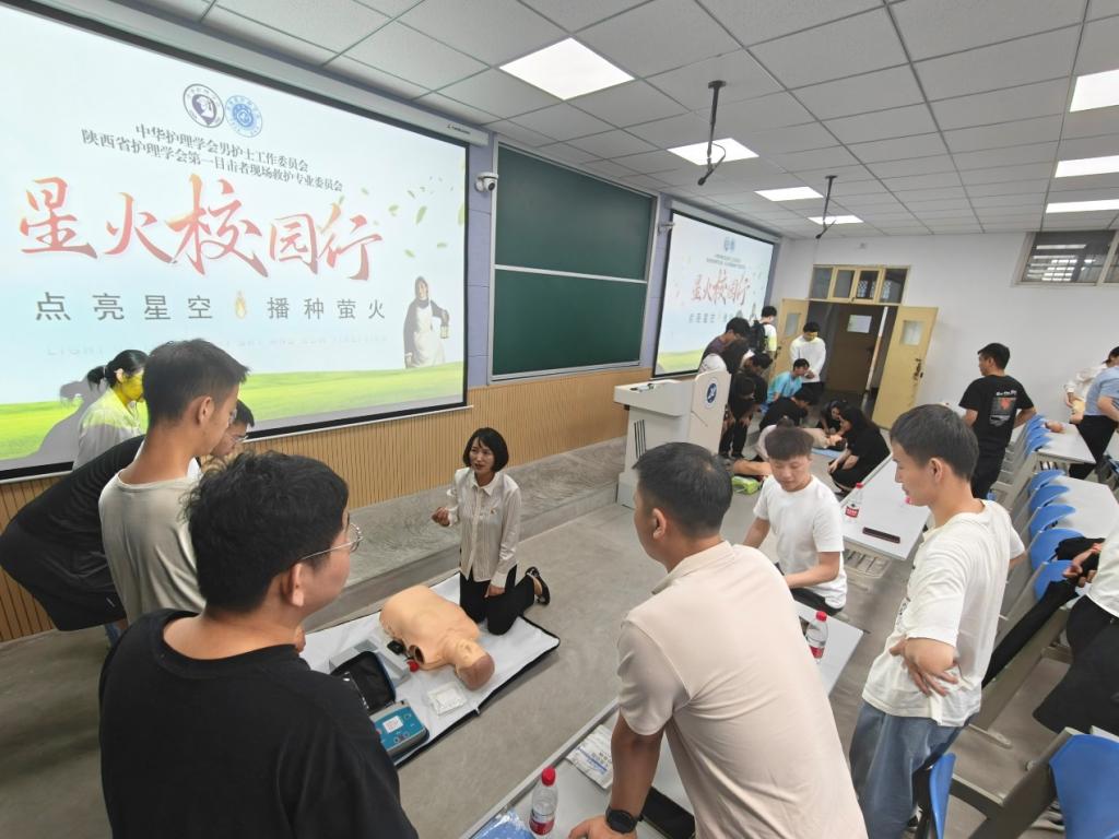培訓開始前,楊博對陜西省護理學會現場救護專業委員會一行表示熱烈的歡迎,希望同學們在本次培訓活動上學有所成,能做到真正學以致用。隨后,陜西省護理學會現場救護專業委員會何乾峰主委在致辭中表示,現場救護專業委員會高度重視健康知識科普,立足“一切為了人民健康”宗旨,今后將緊扣需求,緊扣主題,大力開展“校園健康科普”一系列主題黨日,當好健康衛士,以實際行動為廣大同學的身體健康及安全保駕護航。